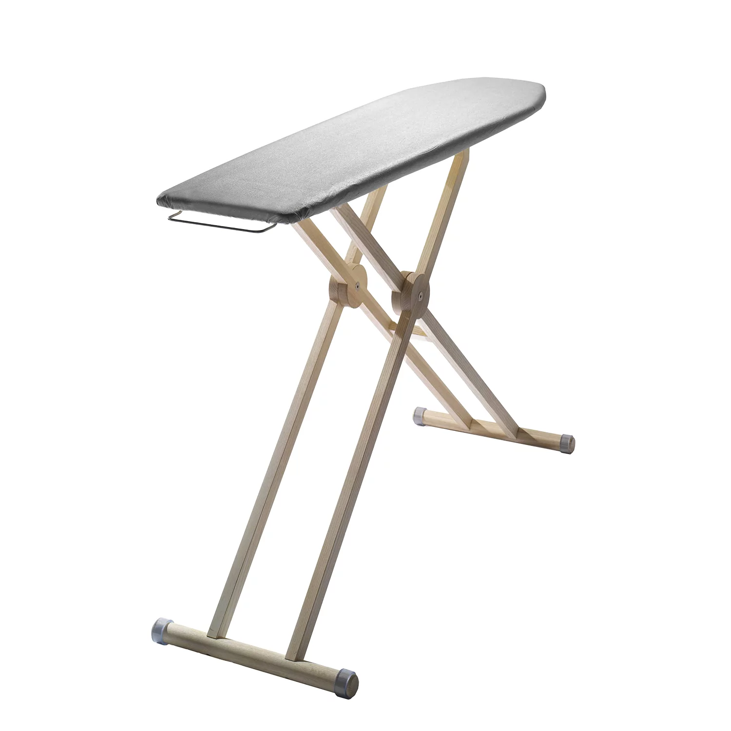 Au Pair bereitet sogar Bügelmuffeln Vergnügen. Auf einem Gestell aus massiver Esche liegt das stufenlos bis zu einer Arbeitshöhe von 90 Zentimetern verstellbare Bügelbrett (Bügelfläche 132,5 x 35,5 cm) mit silberfarbenem Bezug. Au Pair erlaubt auch Bügeln im Sitzen und ein Ersatzbügelbrettbezug wird gleich mitgeliefert. Ihrem faltenfreien Auftritt steht also nichts mehr im Wege.