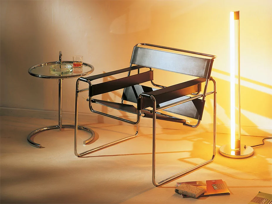 Der Sessel Wassily – international kennt man ihn eher als Wassily Chair – ist einer der großen paradigmatischen Bauhaus-Entwürfe, deren künstlerisch-technische Vollendung dem Wassily eine bis heute nicht anhaltende Nachfrage beschert. Das Bauhaus hatte seinerzeit den programmatisch nicht unbescheidenen Anspruch, Kunst und Technik zu einer formalen Einheit zu verschmelzen. Mit diesem Anspruch ist das Bauhaus zu einer der weltweit einflussreichsten Kunst- und Handwerksschulen aufgestiegen, deren Resonanz bis heute anhält. Der Architekt und Designer Marcel Breuer hat am Aufstieg des Bauhauses wesentlichen Anteil; Breuer ist der Schöpfer des Sessel Wassily, und entsprechend trägt der Wassily deutlich die Handschrift des Bauhauses im Allgemeinen und die Breuers im Besonderen, will heißen: Die technischen Bestandteile eines Entwurfes werden nicht verborgen, vielmehr erschließt sich die Konstruktionsweise eines Möbels dem Nutzer auf Anhieb. Die von Marcel Breuer designten Objekte bestehen zumeist aus nur wenigen Einzelteilen – so auch der Sessel Wassily, dessen tragendes Gestell aus nahtlos geformtem Rundrohrstahl nur durch zwei weitere Querverstrebungen stabilisiert wird, in die auch die Lederpolsterung eingespannt ist.
