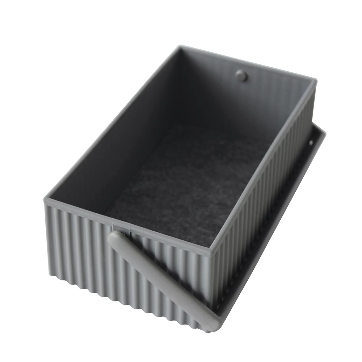 Die Omnioffre Box ist ein echter Allrounder. Am Henkel lässt sich die multifunktionale Box überallhin tragen – bestückt mit den vielen kleinen Utensilien, die ständig gebraucht werden. Weiches, robustes, 100 % recyceltes Elastomer macht die stapelbare Box strapazierfähig und schont die Oberflächen. Die stylische Aufbewahrungsbox in charakteristischer Wellpappen-Optik steht in den Größen S und M zur Wahl.